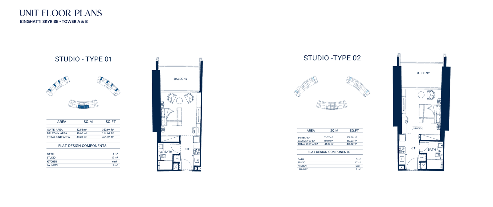 - Average Area (With Balcony): 422-476 sq.ft