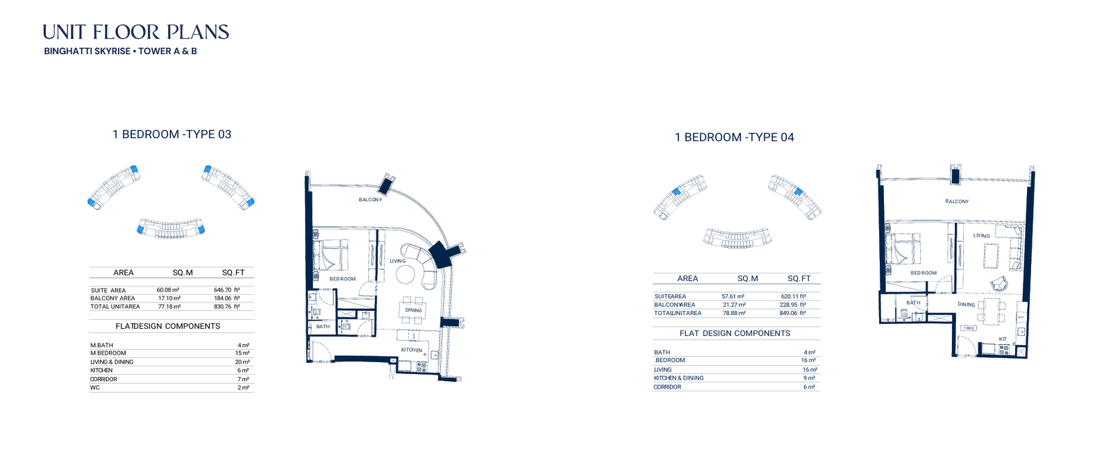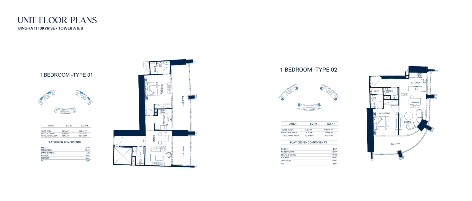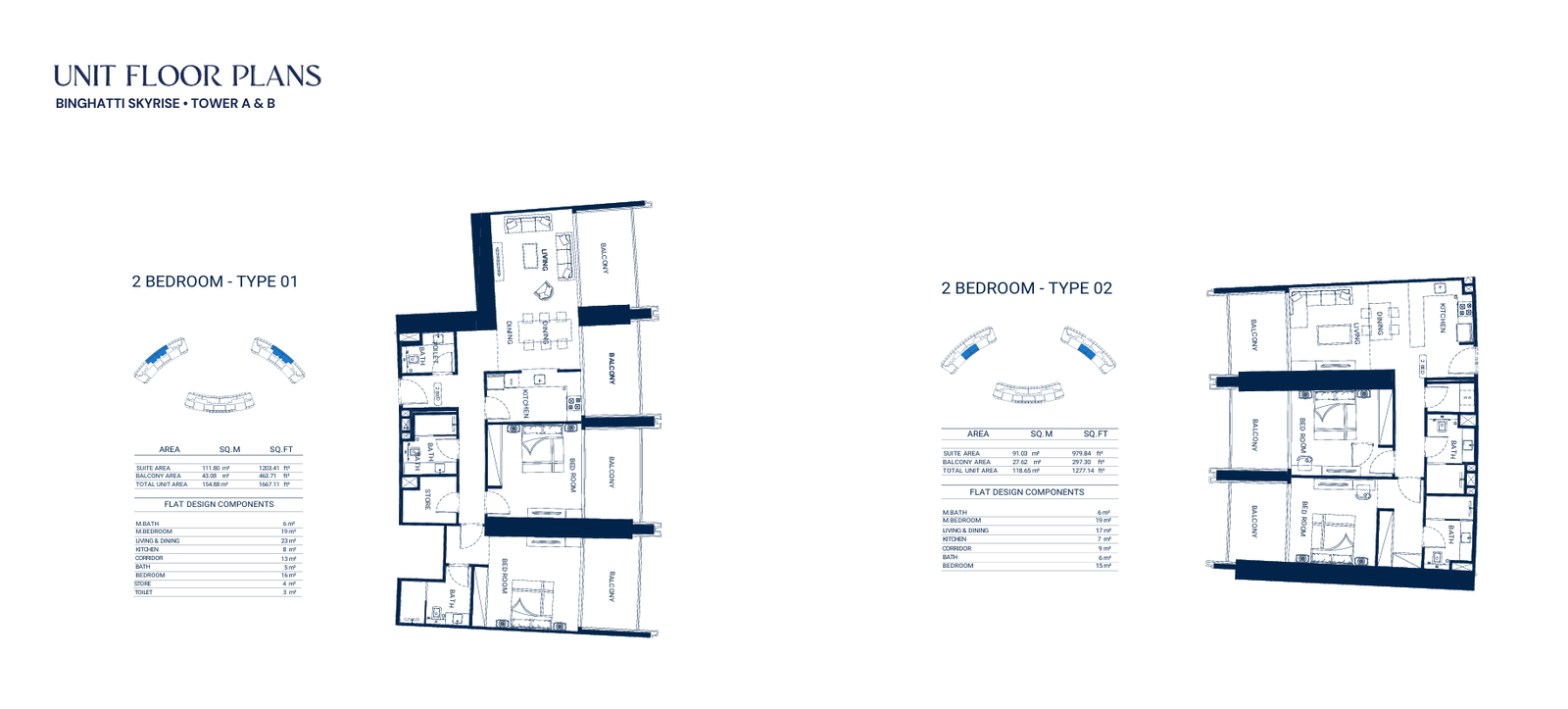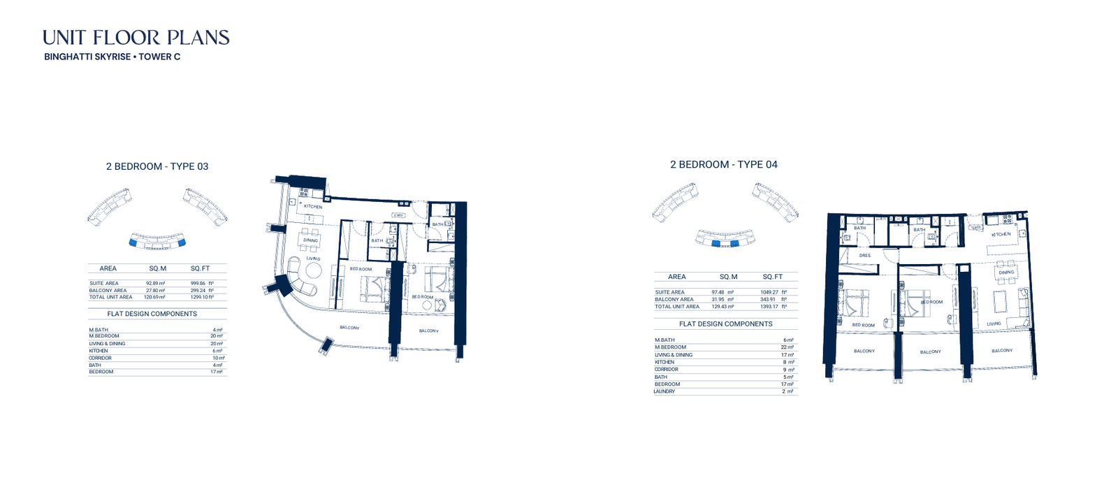 - Average Area (Without Balcony): 999-1,049 sq.ft
